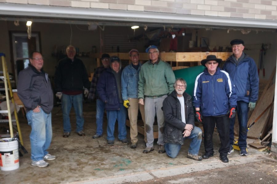 Most of the turning crew with the right-sde up MEYG safely tucked away. Builder Dave Spondike, kneeling.
